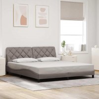 Sengeramme med LED uden madras 200x200 cm stof gråbrun