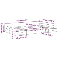 - Samlede dimensioner: 193 x 120 x 28 CM (L x B x H)