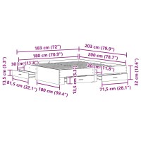 Seng med skuffer Sort Eg 180x200 cm Ingeniørtræ