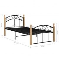 Sengeramme 90x200 cm metal og massivt egetræ sort