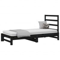 Daybed med udtræk 2x(90x200) cm massivt fyrretræ sort