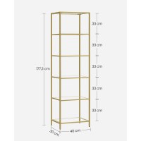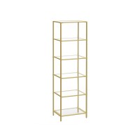 Giv hjemmet et løft med en slank og let reol, der kombinerer hærdet glas med en guldfarvet stålramme. Den moderne, minimalistiske bogreol lader lyset passere og fremhæver alt fra grønne planter til bøger og samlerobjekter. Perfekt i stue, soveværelse, badeværelse eller hjemmekontor, hvor den tilfører et stilrent udtryk uden at fylde.