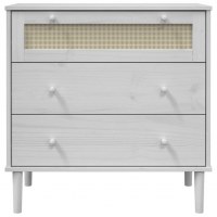 Kommode SENJA rattanlook 80x40x80 cm massivt fyrretræ hvid