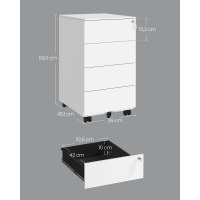 Den robuste metalstruktur giver en maksimal belastning på 15 kg pr. skuffe, så du kan opbevare mapper, papir og skrivebordstilbehør uden bekymringer. Den rene Cloud White-farve passer flot ind i moderne indretninger.