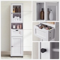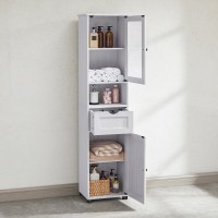 Skab ro og overblik i dit badeværelse med dette slanke kolonnemøbel i hvid træstruktur. Det kombinerer en glasdør med justerbare hylder, en praktisk skuffe og et åbent rum til de ting, du bruger hver dag. Den høje, pladsbesparende form giver masser af opbevaring uden at fylde, så selv små badeværelser kan holdes pæne og indbydende.