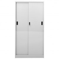 Kontorskab med skydelåger 90x40x180 cm stål lysegrå