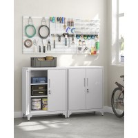 Hold styr på hjem og arbejde med dette alsidige skab i mat grå. Det passer ind i de fleste indretninger og er lige velegnet i garage, kontor, bryggers eller stue. De låselige døre beskytter personlige ejendele, dokumenter og værktøj, mens den robuste konstruktion i pulverlakeret stål gør skabet stærkt, vandafvisende og let at tørre af.