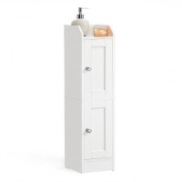Skab ro og orden i små rum med dette slanke gulvskab i Cloud White. Den kompakte størrelse på kun 20 × 18 × 80 cm gør det perfekt til hjørner, trange kroge eller mellemrummet mellem væg og toilet. De indrammede fyldningslåger og runde knopper giver et landligt udtryk, som passer smukt ind i moderne såvel som klassiske badeværelser.