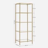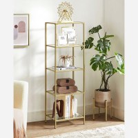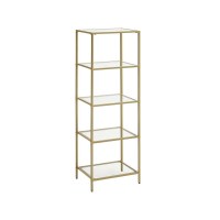 Giv boligen et strejf af luksus med denne slanke stigereol i guld. De lige linjer, klare glashylder og den stabile stålramme skaber et let og moderne udtryk, der passer ind i både stue, badeværelse og hjemmekontor. De fem niveauer giver god plads til bøger, planter, dekorationer eller håndklæder – alt præsenteret på hærdet glas, der fremhæver dine ting på en stilfuld måde.