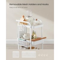 Hold styr på hverdagens ting med dette kompakte rullebord med 3 net-hylder i stål. Det er lavet af robust stål og hver hylde kan bære op til 10 kg, så du får plads til alt fra kontortilbehør og hobbygrej til badeværelsessager og køkkenudstyr. Den lyse farve Cloud White passer ind i de fleste hjem.