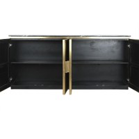 Skænken er designet i en moderne stil og måler 180 × 40 × 85 cm. Bag de 4 døre finder du 2 hylder, så service, bøger eller dekorationer kan organiseres pænt. Den generøse bredde gør den oplagt som tv-møbel i stuen eller elegant opbevaring i entré og spisestue.