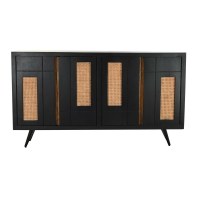 Skænk - sort spanskrør og mangotræ, 160 x 40 x 90 cm