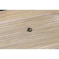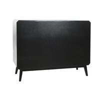 Skænk DKD Home Decor i sort træ er et stilrent valg til dig, der ønsker en moderne opbevaringsløsning med karakter. Fronten er prydet med et dekorativt, rillet mønster i naturlig trætone, som giver et varmt modspil til den sorte korpus. Med 2 døre og 4 skuffer får du både lukket opbevaring og plads til de ting, du vil have lige ved hånden.