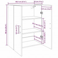 - Samlede dimensioner: 69.5 x 33 x 90 CM (L x B x H)