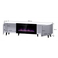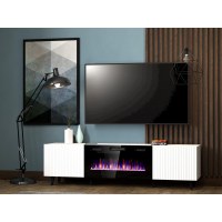 TV-bord med el-pejs Cama MEBLE PAFOS, 180×42×49 cm, hvid mat