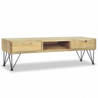TV-bordet har en robust bordplade i hårdttræ, hvorpå du kan placere dit TV, router, medieapparater eller fremvise pyntegenstande såsom fotorammer, frugtkurve eller vaser. De to skuffer og rummet giver rigelig plads til at holde alle slags småting organiseret og indenfor rækkevidde. TV-skabet har stærke smedejernsben. Monering er nem.
