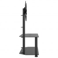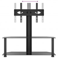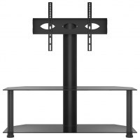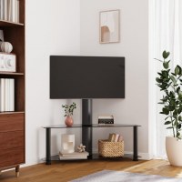 Dette tv-stativ til hjørne kombinerer et tv-beslag og et bord med 2 hylder i ét produkt. Det er en praktisk løsning til montering af dit tv, og det giver ekstra opbevaringsplads i rummet.
