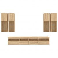 Væghængt tv-møbel 7 dele med LED-lys sonoma-eg