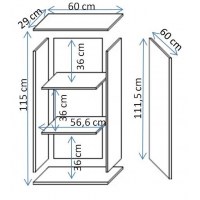 Højde 112 cm, bredde 60 cm og dybde 29 cm.