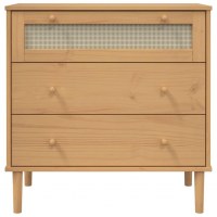 Kommode SENJA rattanlook 80x40x80 cm massivt fyrretræ brun