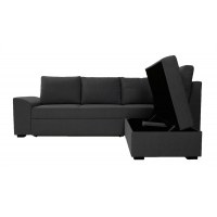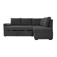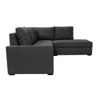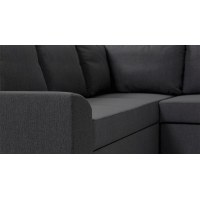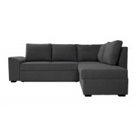 Canapé højrevendt hjørnesovesofa kombinerer afslapning og funktionalitet i ét møbel. Den har indbygget sengeudtræk på metalstel til gæster og et opbevaringsrum i chaiselongen til sengetøj. Sofaen er betrukket med slidstærkt strukturvævet antracit stof (Inari 95) og har løse ryghynder samt fast sidde- og liggekomfort – ideel til hverdagsbrug i stuen eller den lille lejlighed.
