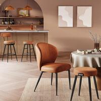 Skab en varm og indbydende stemning ved køkkenøen eller hjemmebaren med disse barstole fra VASAGLE EKHO Collection. Sæderne er betrukket med vandafvisende, syntetisk læder i en elegant karamelfarve, prydet med raffinerede syninger for et mid-century modern udtryk. Den 360° drejelige funktion gør det let at vende sig og tale med familie og gæster, så enhver samling bliver mere social.