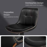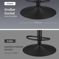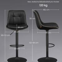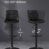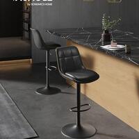 Stolene kan højdes justeres mellem 63–84 cm og dreje 360°, så du let finder din foretrukne siddeposition ved bar, køkkenbord eller i stuen. Den matte sorte søjle og runde base matcher moderne indretninger og skaber en rolig, stilren atmosfære.