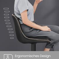 Giv køkkenøen eller hjemmebaren et stilrent løft med disse barstole i sort kunstlæder. Det quiltede sæde og den bløde dobbeltpolstring inviterer til lange, afslappede stunder, mens den ergonomiske ryglæn giver behagelig støtte. Den 32 cm brede fodstøtte aflaster benene, så du kan sidde komfortabelt – både ved morgenkaffen og den sene dessert.