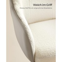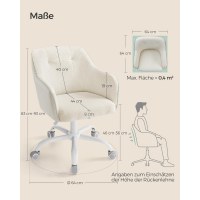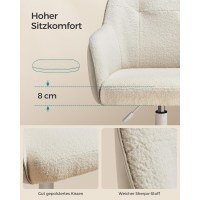 Det bløde sherpa-stof føles rart mod huden og skaber et varmt, tekstureret udtryk, mens den stabile konstruktion giver en pålidelig bæreevne på op til 110 kg. Den glatte højdejustering hjælper dig med at finde den rette arbejdsposition, og de letkørende PU-hjul gør det enkelt at bevæge sig ved skrivebordet.