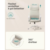 Skab en behagelig arbejdsplads med denne ergonomiske kontorstol fra SONGMICS. Den S-formede ryglæn følger kroppen og støtter nakke, ryg og lænd, mens vippefunktionen på 90–105° giver naturlig bevægelse og aflastning i løbet af dagen. Den 7 cm tykke kvalitetskumme er behagelig og trykaflastende – hverken for blød eller for fast – og det åndbare stof lader kroppen "ånde" under lange arbejdsdage.