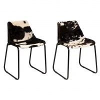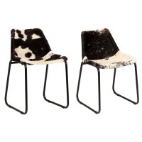 Stolene er lavet af ægte gedelæder med koskindslook og understøttes af solide stålben, som understreger deres industrielle stil. De behagelige sæder har et ergonomisk design. Pakken indeholder to spisebordsstole i ægte læder. De er nemme at samle.