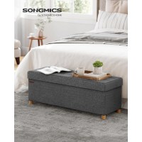 Denne skifergrå opbevaringsbænk kombinerer siddeplads og smart opbevaring i ét. Det elegante betræk i linned-look og den polstrede top giver et indbydende udtryk, mens den dobbelte stofoverflade og skum med høj resiliens sikrer behagelig komfort, når du tager sko på, slapper af eller bruger den som fodskammel.
