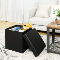 Puf med opbevaring foldbar 38 × 38 × 38 cm, sort