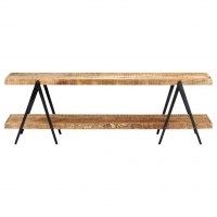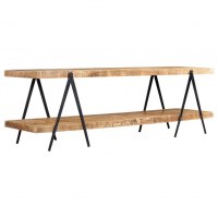 Hi-fi-skænken er lavet af massivt mangotræ, som er et hårdttræ med tætte årer. Ru mangotræ er ikke bare et stærkt materiale, det er også slidtstærkt og holdbart. Derfor er dette smukt designede tv-bord stabilt, holdbart og iøjnefaldende. Det fremragende håndværk garanterer, at de yndefulde trækorn gør hvert møbel særligt og unikt. Hvert trin i processen er udført med den største omhu, hvad enten det er polering eller lakering. Denne tv-skænk har desuden 2 hylder, som giver rigeligt plads til opbevaring af dine multimedieenheder, bøger og andre sager. Det pulverlakerede stel bidrager til den robuste konstruktion og tilføjer også skænken en industriel charme. Denne vare er let at samle.