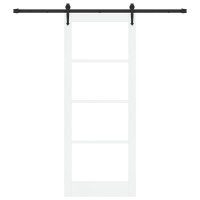 Skydedør med hardware sæt hvid 83x211 cm solid fyrretræ, indvendig dør med glas 'ORKDAL'hvid 83x211x4 cm