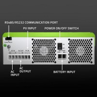 Vekselretteren leverer ren sinus og har typisk omskiftning på 10–20 ms, så udstyret kører jævnt ved skift mellem kilder. Farverne hvid og grøn giver et moderne udtryk, mens vægmonteret kabinet optager minimal plads. Den passer ind i kategorien solpaneler og vekselrettere, hvor den fungerer som hjertet i dit off‑grid system.