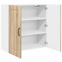 Dette vægskab til køkkenet giver et moderne udtryk og rummer masser af opbevaringsplads, så dit køkken forbliver organiseret og pænt. De rene linjer og den hvide ramme giver en minimalistisk og funktionel følelse, der passer til mange køkkenstile. Det er ideelt til opbevaring af service, mad og køkkenredskaber, så du får kombineret funktion med et lækkert design, der løfter din køkkensituation.