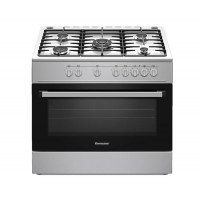 Ravanson KWGE-K90A Cheff er et stort, fritstående komfur i sølv, der kombinerer en gas-kogeplade med 5 blus og en rummelig elektrisk ovn på 110 l. Det gør madlavningen hurtig på blusset og ensartet i ovnen – perfekt til familier, madentusiaster og alle, der vil have fleksibilitet i køkkenet. De varmebestandige drejeknapper og støbejernsriste giver et solidt, professionelt udtryk, mens wokblusset på 3.000 W klarer alt fra hurtig stegning til store gryder.