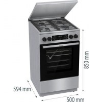 Gorenje GKS5C71XF kombinerer præcis gasmadning på 4 kogezoner med en rummelig el-ovn på 70 l. Det er et kompakt, fritstående komfur i sølv/sort, ideelt til mindre køkkener og minikøkkener, hvor du ønsker hurtig varme, enkel betjening og moderne design. LED-display med elektronisk ur og touch-timer gør hverdagens madlavning overskuelig.