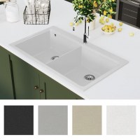 Overflademonteret dobbelt køkkenvask i granit, hvid
