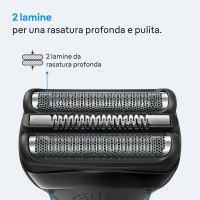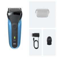 Braun Series 3 er en elektrisk barbermaskine i blå og sort, skabt til en præcis og behagelig barbering i hverdagen. Det tredobbelte skæresystem fanger flere hår pr. strøg for en jævn og tæt finish, også velegnet til følsom hud. Den ergonomiske form ligger sikkert i hånden og gør barberingen mere kontrolleret og komfortabel.