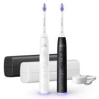 Gør din mundpleje enkel og effektiv med Philips Sonicare 6500. Dette sæt indeholder to soniske tandbørster i elegant sort og hvid – perfekt til par eller familier. Med op til 62.000 bevægelser i minuttet og tre børstetilstande får du en grundig rengøring, skånsom pleje til følsomme tænder og en hvidgørende tilstand til et friskere smil.