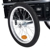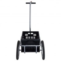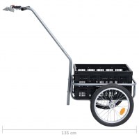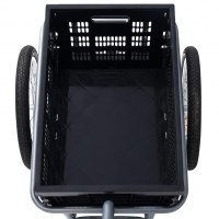 Cykelanhængeren er lavet af stål, hvilket gør den meget robust og holdbar. Den har et kuglekoblingsdesign til hurtig tilslutning til cyklen. Den er udstyret med 2 håndtag på trækstangen, så den også kan bruges som trækvogn. De farvede reflekser med høj synlighed er designet til forbedret sikkerhed. Takket være den aftagelige transportkasse med en stor belastningskapacitet på 60 kg er anhængeren ideel til at transportere dagligvarer, campingudstyr, sportsartikler eller hvad som helst, du skal have med dig.