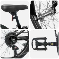 - Robust stålkonstruktion Med en solid stålrørsramme og gaffel, dette mountainbike er bygget til at modstå hårde forhold og daglig brug. Du kan stole på, at cyklen holder til dine eventyr.