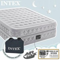 Intex Queen Supreme Air-Flow Fiber-Tech er en dobbelt luftmadras, der kombinerer holdbarhed og høj komfort. Med målene 152 × 203 × 51 cm og en generøs højde på 51 cm føles den som en traditionel seng og giver stabil støtte natten igennem. Overfladen er blød, og den rektangulære form gør det let at redde sengen og placere den i rummet.