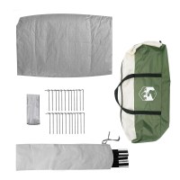 - Alt Campingtilbehør Inkluderet Der følger en bæretaske, jernspidser og snore med, så du nemt kan sætte det op og få det stabilt. Alt hvad du behøver er her for en problemfri campingoplevelse.