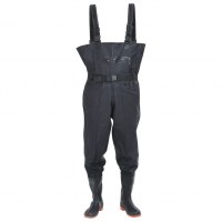 - Vandafvisende: Det specialbelagte polyesterstof er behageligt indvendigt og robust udvendigt. Takket være deres quiltede og tapede sømme samt fastgjorte støvler er disse waders vandafvisende.