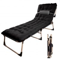 Sammenklappelig feltseng 193 cm – sort rejsefeltseng med puder