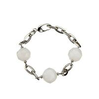 Det lette kædeudtryk og de hvide elementer skaber en elegant kontrast, der passer smukt til både casual outfits og aftenkjoler. Armbåndet lukkes med en praktisk karabinlås og leveres i en æske med brand, klar til at blive givet videre eller forkæle dig selv.