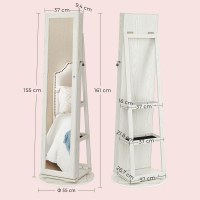 Hold styr på smykker, makeup og accessories i ét elegant møbel. Dette fritstående smykkeskab forener helkropsspejl, 360° drejefunktion og praktiske hylder, så du kan se dit look fra alle vinkler og have det vigtigste lige ved hånden. Den hvide finish med grå træstruktur passer smukt ind i soveværelset eller garderoben.